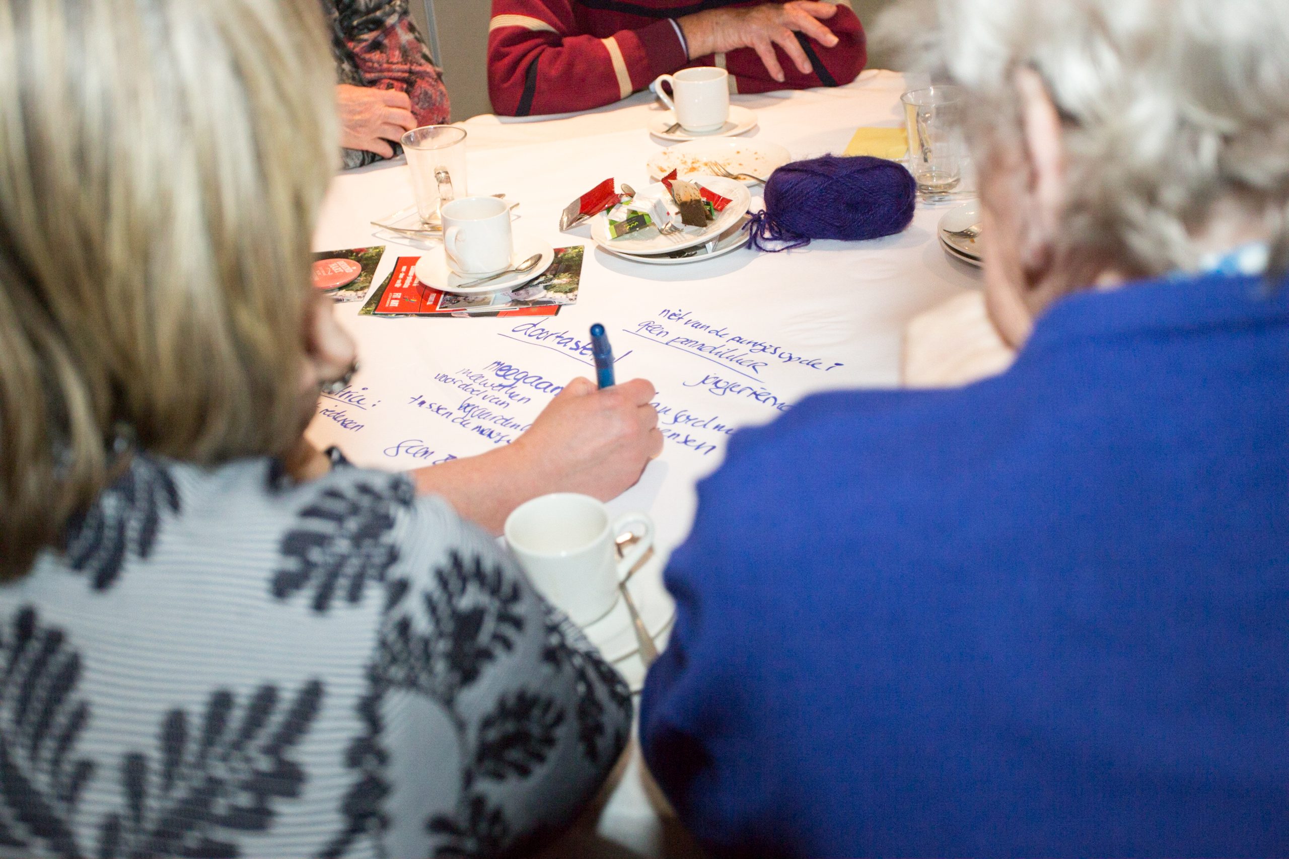 De grote lijn van Droomoord stond. Maar in de scenes kon het nog alle kanten op. Samen met de groep werden gebeurtenissen uitgewerkt tot scenes op papier, maar ook geoefend in spel. Spelen hadden ze nog nooit gedaan, maar met theatermaker Elcke Nijhuis kwam iedereen op gang. Van de slechtzienden leerden we hoe we teksten toch zichtbaar konden maken. En van de slechthorenden leerden we hoe duidelijker te communiceren. En met de minder mobielen zochten we uit hoe we toch zo mobiel mogelijk konden zijn.