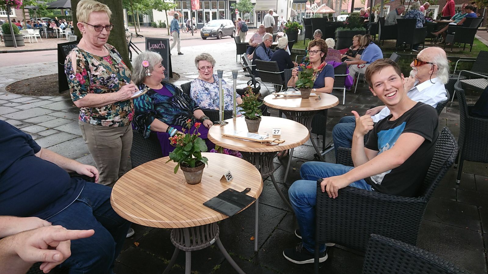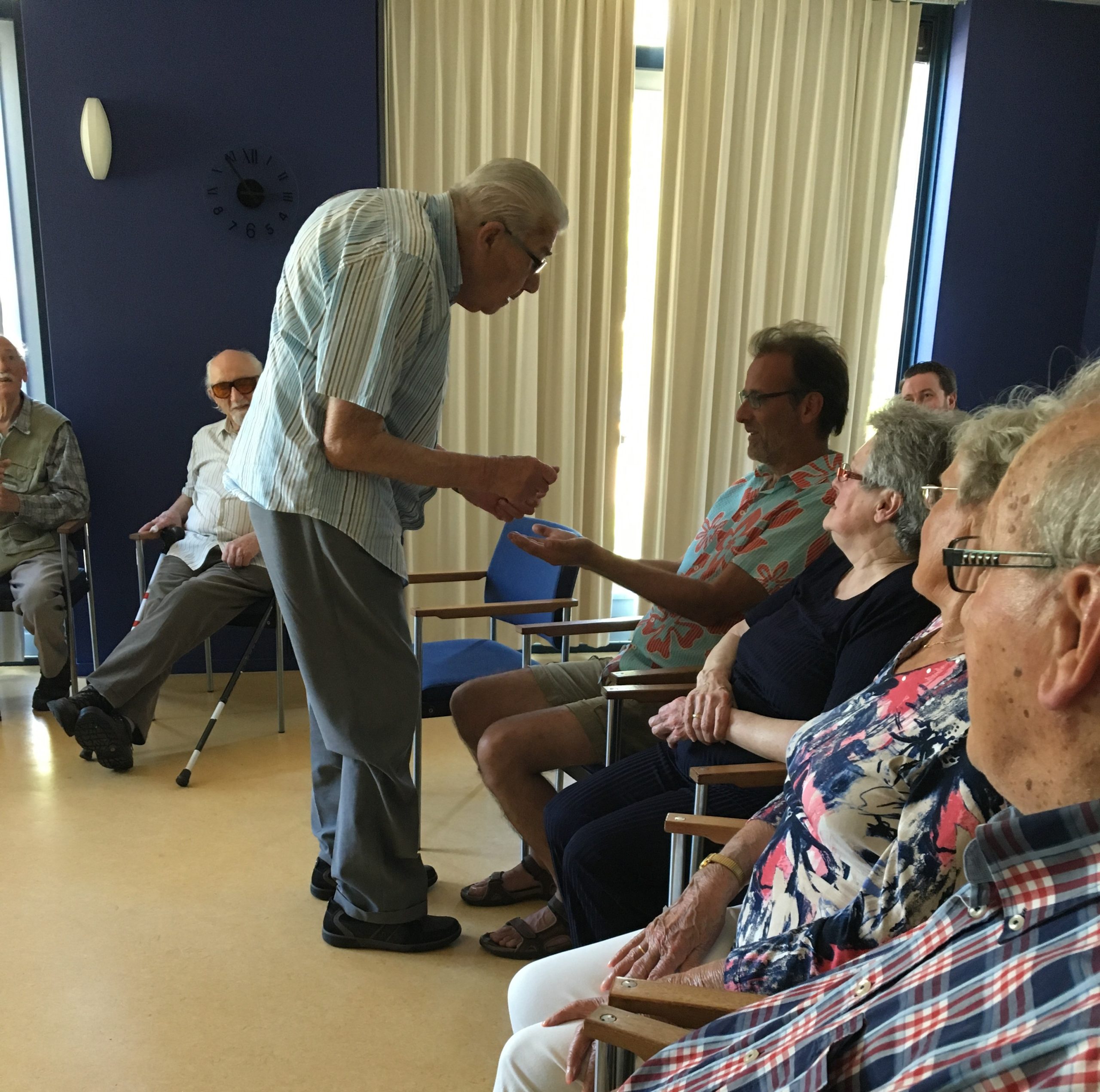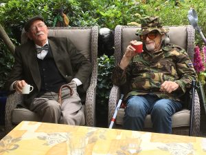 Het was hard werken. Maar ze vonden en vinden het heerlijk. De draaidagen waren intensief maar ook ontspannend. Het team achter de schermen zorgde heel goed voor cast & crew. Een van de deelnemers zei: “ik ben zo blij dat ik hier ben, want thuis zit ik maar te slapen”. Rollators werden vergeten, rammelende hartkleppen alleen maar lastig. Vaak werd de geplande thuiszorg verschoven naar later of ze kwamen naar de set. En zelfs was er een nachtscene tot 1 uur ’s nachts. En samen genoten we van het visje van de markt! Hun huisarts zei later bij zijn presentatie voor Rotary-genoten: “Dit zijn mijn patiënten met niet de dunste dossiers, maar ik heb ze in maanden niet gezien”.
