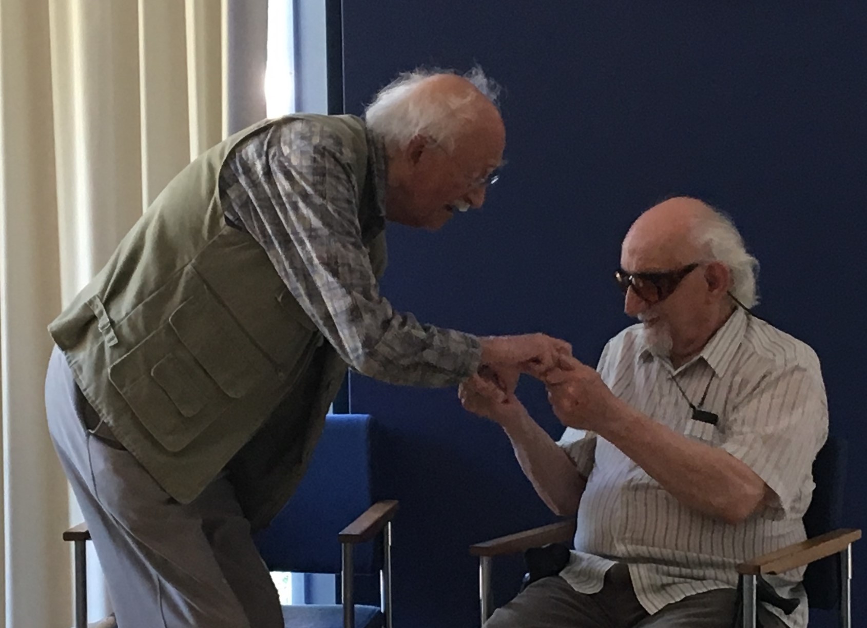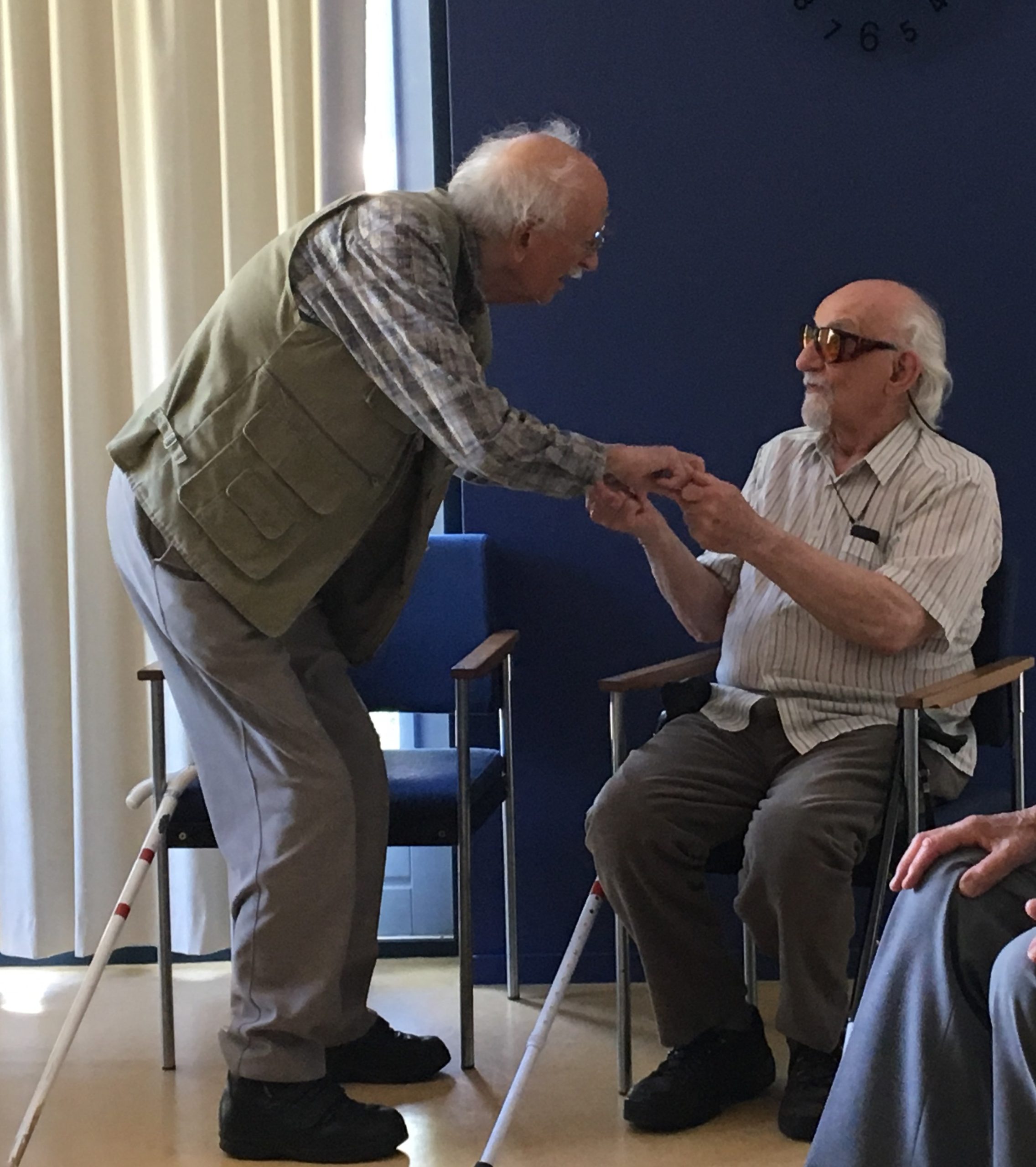 En ook al zaten ze zelf niet in een scene, alle spelers waren er de hele tijd bij en volgden alles. Een van de drie slechtziende spelers had zijn eigen volgsysteem en hielp de regisseur door op draaidag 8 aan te geven welke scene nog vergeten was. Iedereen spande zich in tot het uiterste om het goed te doen. En steeds weer hoorde je: “heel goed gedaan, maar we doen het nog een keertje”.
