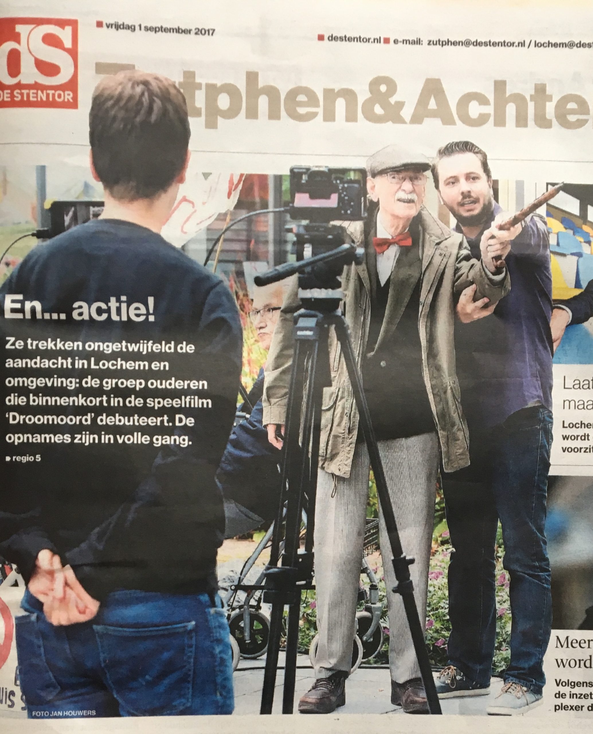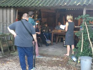 In 9 draaidagen hebben we de film opgenomen. Niet de scenes netjes achter elkaar, nee alles van voor naar achter door elkaar. Dat vergt een enorm inlevingsvermogen in het moment en een groot vertrouwen in de regisseur. En organisatietalent – want vooraf werd doorgesproken welke setjes kledij er de volgende keer mee moesten.