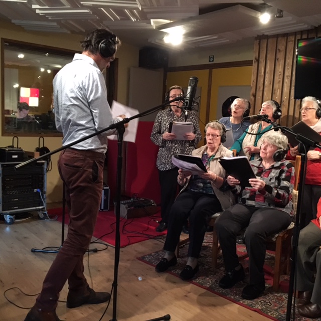 Natuurlijk moet je zo’n videoclip goed voorbereiden. Daarom gingen de vrouwen van het Spijkerkoor met hun leider Wolfram Reisiger naar de studio. Om hun lied op te nemen. Dat is toch een belevenis op zich.