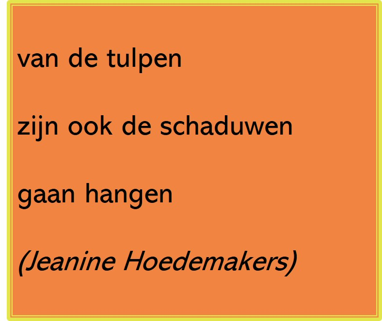 Jan Guichelaar, schrijft zelf haiku’s en heeft een aantal haiku bundels uitgegeven en is actief lid en bestuurslid van de HKN (Haiku Kring Nederland) en is verantwoordelijk voor publicaties en vormgeving van diverse haikuboeken en promotie m.b.t. het haiku schrijven. |