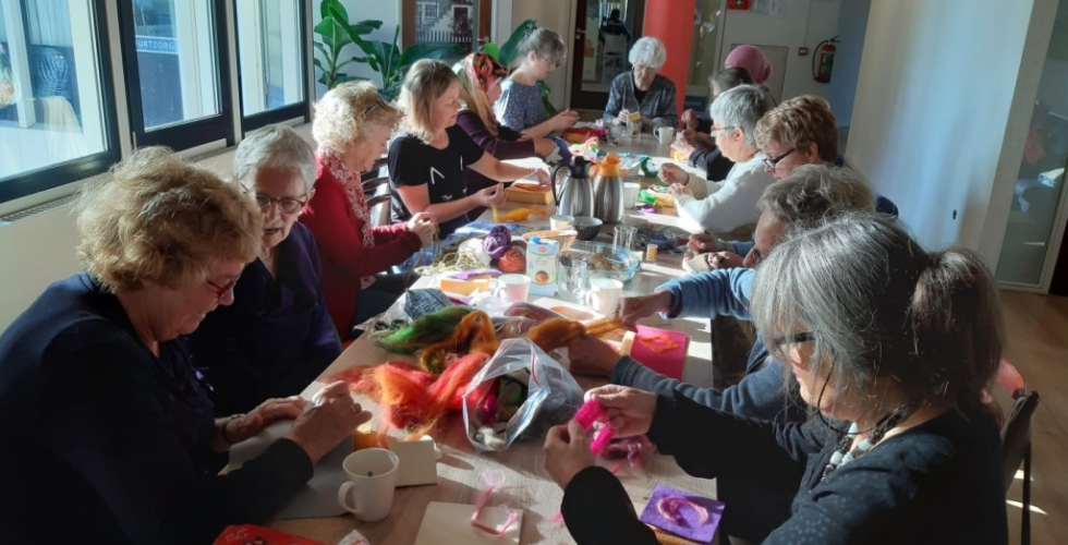 Heel informeel, maar super gezellig. Taalproblemen kennen we niet, want de taal van mooi handwerk verbindt ons.