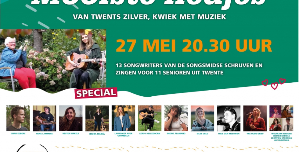 11 songwriters - waarvan 9 conservatorium studenten van de POP-academie in Enschede - hebben het zichzelf niet makkelijk gemaakt. Schreven zij eerder alleen in het Engels of vanuit zichzelf ... In dit project Kwiek met Muziek lieten zij hun oudere aan het woord en vertaalden zij hun verhaal in een taal en stijl die past bij de vertellers.