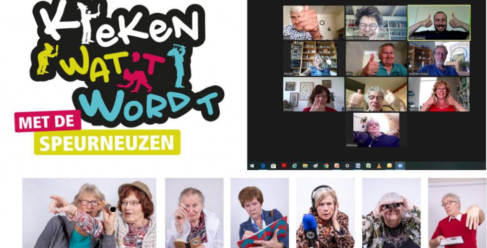 Eerst grote schrik. Maar al gauw begon de ‘crew’ de ‘cast’ te missen. Dat was wederzijds, bleek na een belronde. Zelfs onze drie oudste deelnemers (90plussers) wilden maar wat graag weer aansluiten. Maar hoe? Ieders veiligheid moet zeker gegarandeerd. ZOOM’en vanuit eigen huis leek ons dé oplossing! Via allerlei ingangen en omwegen regelden we in no-time tablets, smartphones en pc’s, installeerden we apps met hulp van dochters, kleindochters en de thuiszorg.