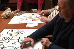 Bewoners van de Hoge Weide zitten in een kring, die steeds groter wordt. Aandachtig kijken zij naar het witte vel dat voor hen op de grond ligt. Langzaam en steeds zekerder sturen zij hun lange penseel over het witte papier. De afstand maakt dat zij goed overzicht kunnen houden. Het grote vel wordt helemaal benut. Zij maken hun eigen compositie - ieder zijn eigen beeldtaal - zwart op wit. De sfeer is ontspannen, rustig en ze werken in stilte. Alles voelt ZEN!
