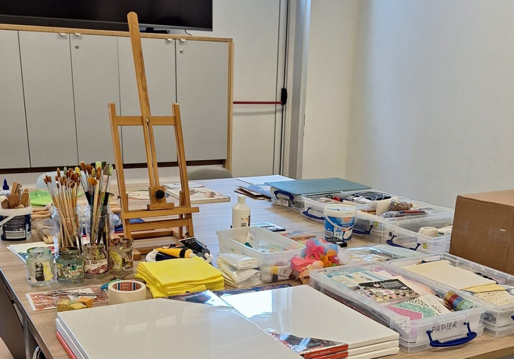 De begeleidend kunstenaars Margreet Markus en Marij Schrijen hebben altijd een scala aan materialen bij zich. Zij faciliteren en assisteren waar gewenst en nodig. Je kunt komen borduren, haken of breien, maar ook schilderen, mandala's tekenen of boetseren, een 3D kunstwerk maken. Je kunt iets nieuws beginnen, maar ook doorwerken aan iets waar je thuis actief mee bent.