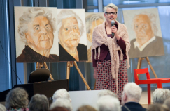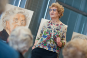 Ingrid Kleinsman interviewt Rita Susebeek. De prachtige portretten vormen de buitencirkel van de arena waarin de bezoekers van het symposium hebben plaatsgenomen. De grote portretten van 90 bij 70 maken echt indruk. De titel Monument voor Ouderen is bedoeld als eerbetoon aan de ouderdom. Alle geportretteerden zijn zelf een monument, de tijd is over hen heengegaan. Hun gezichten zijn als landschappen met ieder hun eigen betekenis. De ouderdom mag gevierd worden en deze prachtige ouderdom dwingt respect af. Zoals de filosoof Heschel over de ouderdom zegt Beschouw het als een overwinning - Ouderdom - Beschouw het niet als een straf. Wie op jaren is heeft overzicht, heeft van zijn mislukkingen geleerd en is in staat zich van vooroordelen te ontdoen, niet meer koortsachtig bezig zijn belangen na te streven.