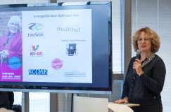 Trix van der Linden, wethouder cultuur, zorg&welzijn, wmo, onderwijs en duurzaamheid, opende het symposium. Cultuur is belangrijk voor Lochem. Zij ziet dat door de bemoeienis van veel - ook entousiaste oudere - burgers er een rijk cultureel leven is ontstaan. Het zet Lochem op de kaart. Lochem is als cultuurstad voor veel ouderen uit andere delen van het land reden om zich hier te vestigen. Des te belangrijker om na te denken hoe je cultuur kunt inzetten voor preventie in de ouderenzorg: mogelijkheden creëren voor actieve kunstbeoefening voor ouderen.
