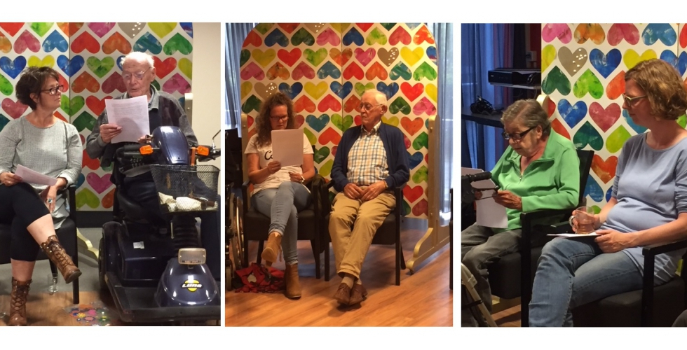 Vrijwilligers waren zeer enthousiast over de lessen beeldend schrijven van Merel Bruning van www.Schrijfzicht.nl. Het samen oefenen 'op het droge' haalde toch wel de koudwatervrees weg. Zij waren dan ook helemaal klaar voor hun speeddate met de bewoners die zich hadden aangemeld voor dit project. Ieders verhaal vorderde gestaag. De meeste schrijvers gingen zeker 3x op bezoek bij de vertellers om maar zoveel mogelijk details te verwerken in het verhaal en natuurlijk ook om het terug te laten horen. Als verteller je eigen evensverhaal terughoren, dat maakt impact. En ook trots. Want de schrijvers hebben het echt mooi beeldend en intens verwoord. Samen zijn ze er klaar voor om het verhaal te delen met elkaar. En hoe groot is dan de verrassing dat er van het verhaal ook nog een eigen uniek levenslied is gemaakt door 2 fantastische muzikanten/muziektherapeuten Loïs Bruggema en Floor Koetsier. Dan blijkt maar weer eens de kracht van Muziek!